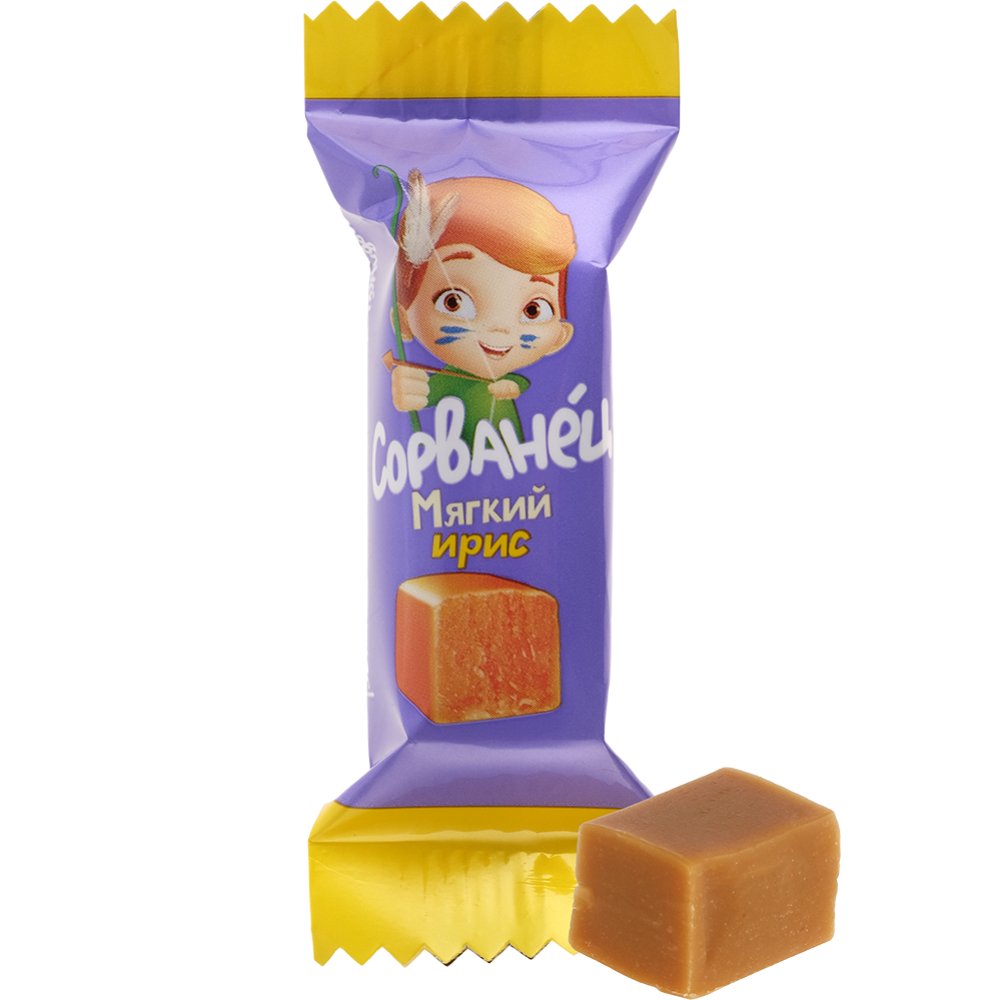 Краткое описание | «Сорванец» мягкий ирис - нежный ирис изготовлен из цельного сгущенного молока. У ириса приятный сливочный вкус с тонким ароматом ванили. |