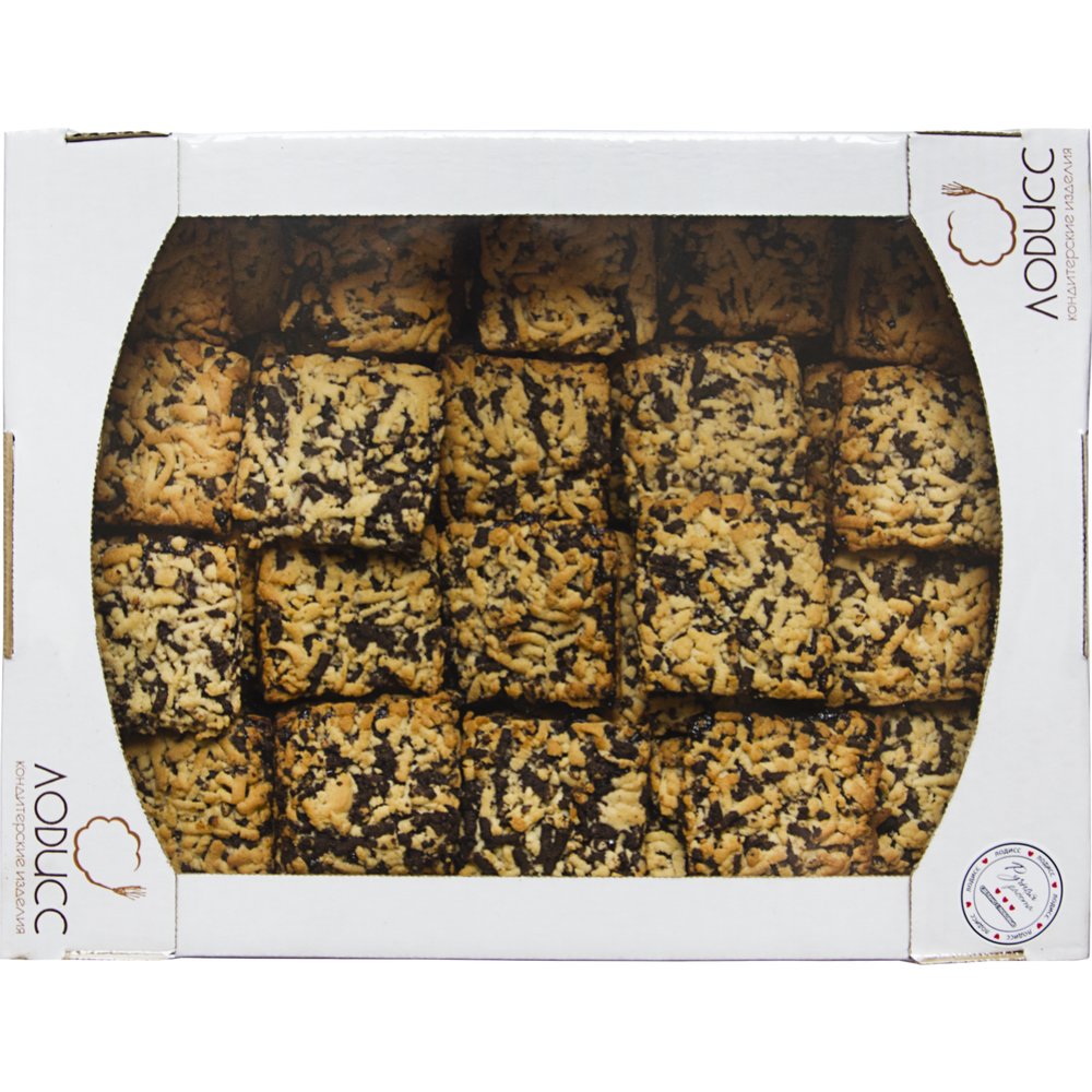 Состав | мука пшеничная в/с, наполнитель Ароматик "Термошкачерная смородина" (сахар, вода питьевая, патока крахмальная, пюре яблочно, сок черносмородиновый восстановленный, бузина замороженная, загустители:клетчатка цитросовая и пектин, регуляторы кислотности:кислота лимонная, цитрат натрия, ароматзатор пищевой черная смородина, краситель:кармин Е120), маргазин столовый ("Эуниверсал 1203-32"((рафинированные дезодорированные растительные масла в натуральном и модифицированном виде, в том числе соевое, вода, эмульгаторы: моно- и диглицериды жирных кислот, соевый лецитин, соль, сахар, консервант сорбат калия, регулятор кислотности: лимонная киcлота, ароматизатор, краситель: бета-каротин, антиокислители: аскорбиновая кислота, альфа-токоферол), сахарная пудра, ароматизатор “Ванилин” (полисахариды, ванилин кристалллический). Возможны следы:арахиса, кунжута, молочной сыворотки. |