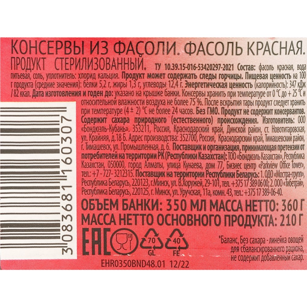 Состав | фасоль красная, вода питьевая, соль, уплотнитель: хлорид кальция. |