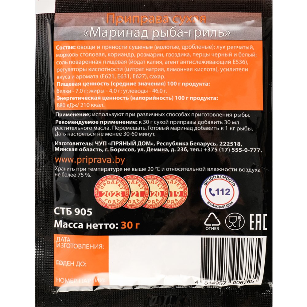 Производитель | ЧТУП «Пряный Дом» Минская обл., г. Борисов, ул. Демина, 23Б, Беларусь. |