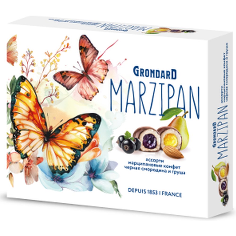 Состав | марципан (сахар, миндаль (33%), глюкозно-фруктозный сироп, агент влагоудерживающий: сорбит, консервант (сорбат калия), ферментный препарат микробного происхождения (инвертаза), регулятор кислотности: лимонная кислота), шоколад темный (сахар, какао тертое, какао-масло, эмульгаторы (соевый лецитин, Е476), ароматизатор «Ванилин»), м.д. общего остатка какао не менее 40 %, начинка (сахар, патока карамельная, груша, вода питьевая, грушевое пюре, загуститель: пектины, модифицированный крахмал, регуляторы кислотности (лимонная кислота, цитраты натрия, цитраты кальция), ароматизатор, консервант: сорбат калия, пищевой краситель: куркумин). |