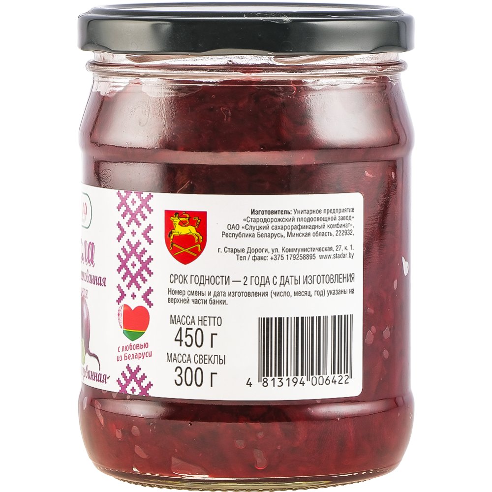 Производитель | УП «Стародорожский плодоовощной завод" ОАО «Слуцкий сахарорафинадный комбинат» 222932, Минская обл, г. Старые Дороги, ул. Коммунистическая, д. 29, Беларусь. |
