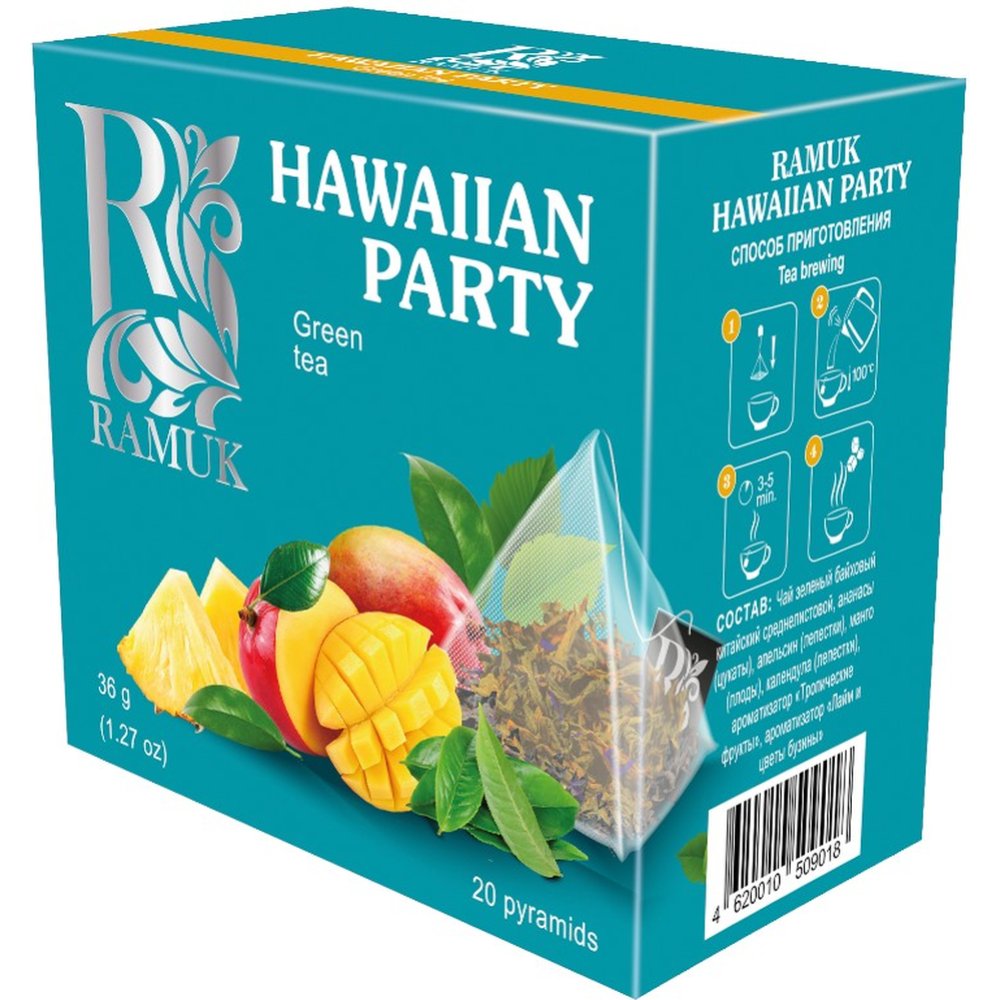 Состав | чай зеленый байховый китайский среднелистовой, ананасы (цукаты), апельсин (лепестки), манго (плоды), календула (лепестки), ароматизатор «Тропические фрукты», ароматизатор «Лайм и цветы бузины». |