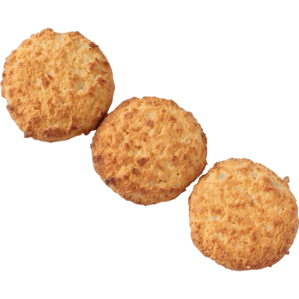 Состав | мука пшеничная высшего сорта; масло пальмовое рафинированное дезодорированное; сахар; кокосовая стружка; патока карамельная ферментативная; сироп инвертный (сахар, регулятор кислотности: лимонная кислота); сыворотка молочная деминерализованная сухая (сыворотка молочная подсырная, сыворотка молочная творожная); крахмал кукурузный; разрыхлитель гидрокарбонат аммония; ароматизатор; соль пищевая выварочная йодированная, сорт «Экстра» (соль пищевая выварочная, йодат калия, агент антислёживающий Е536). Продукт может содержать следы арахиса и кунжута. |