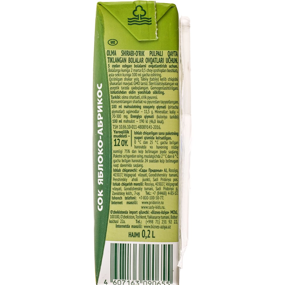 Состав | сок яблочный, абрикосовое пюре. Содержит сахар природного происхождения. |