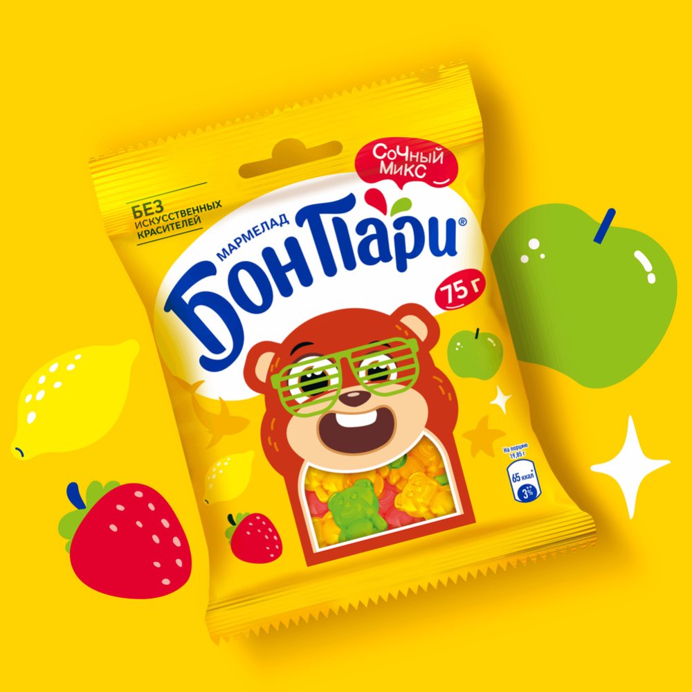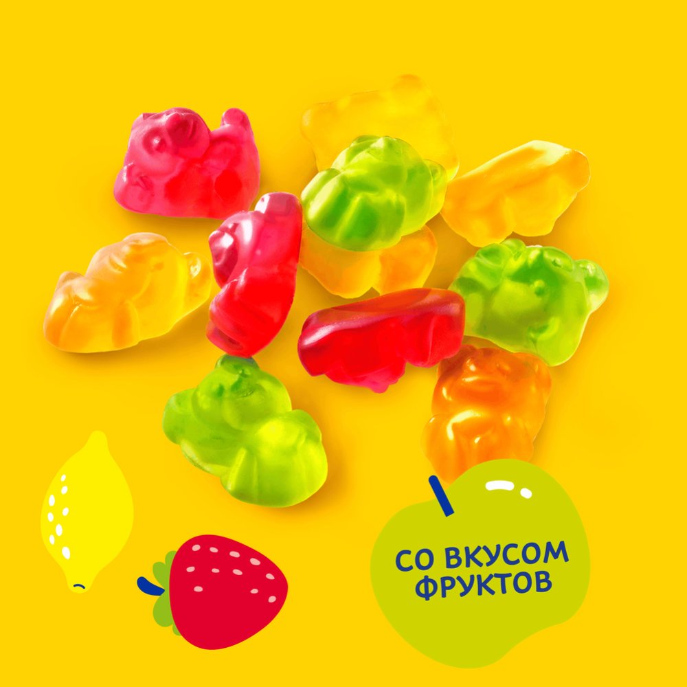 Краткое описание | Жевательный однослойный мармелад со вкусом фруктов в форме забавных медвежат. Без искусственных красителей. Сочный микс. |