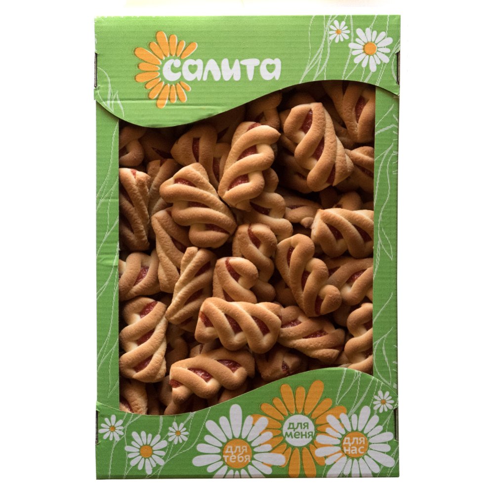 Состав | мука пшеничная в/с, маргарин (жир растительный), вода, сухое обезжиренное молоко, соль, сахар, эмульгатор - моноглицерид Е471, консервант - сорбат калия Е202 (0.06 %), ароматизатор идентичный натуральному пищевой краситель - Бета каротин, повидло яблочное (яблоки, сахар, ароматизатор, идентичный натуральному персик, (в составе пищевые добавки влагоудерживающий Е1518), ароматизатор идентичный натуральному "персик"), красители пищевые натуральные, экстракт паприки, каротины (Е160а), сахар песок, соль поваренная, пищевая йодированная, разрыхлители: соль утлеаммонийная Е503и, натрий двууглекислый Е500и. |