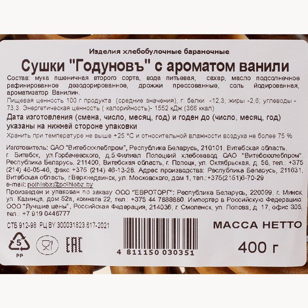 Состав | мука пшеничная первого сорта, вода питьевая, сахар, масло подсолнечное рафинированное дезодарированное, дрожжи прессованные "Столичные" "Люкс", соль поваренная пищевая йодированная (соль, йодат калия, агент антислеживающий Е-536), ароматизатор "Ванилин". |