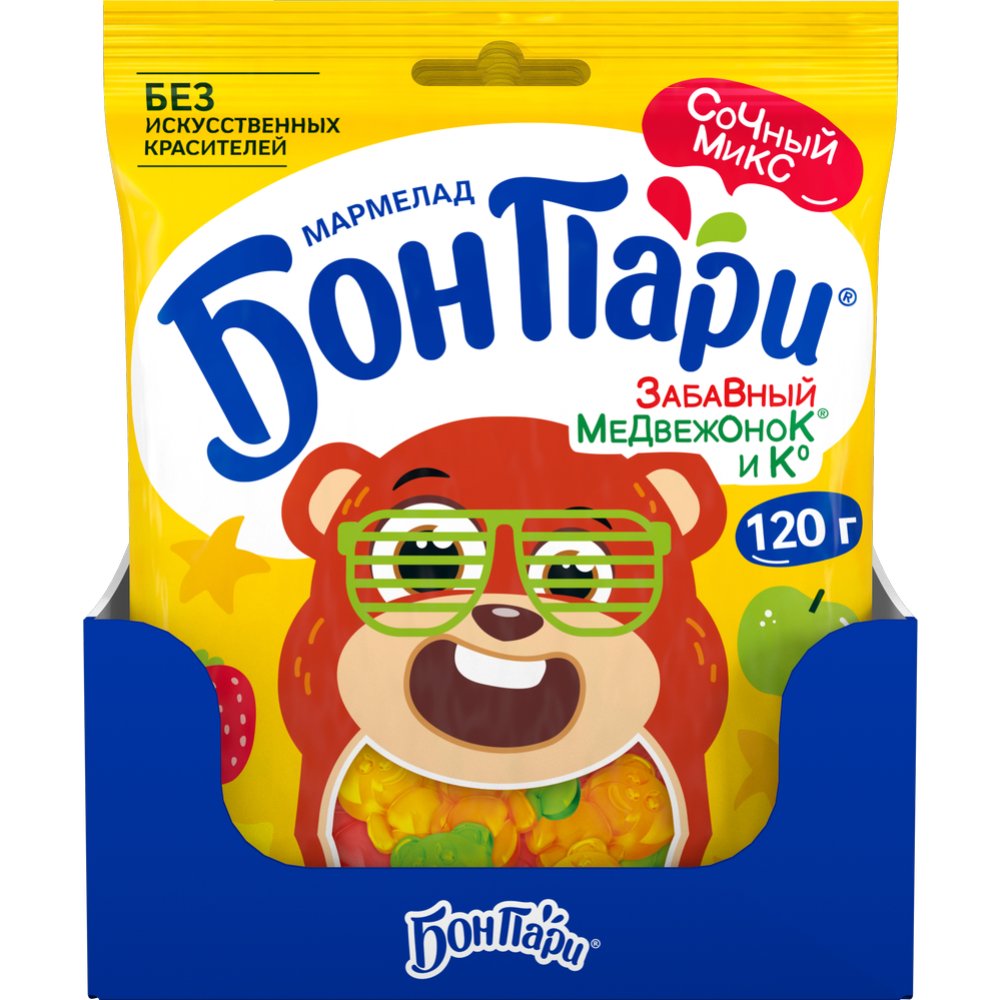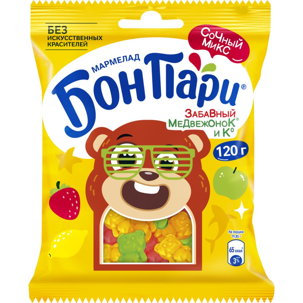 Краткое описание | Жевательный мармелад Бон Пари ® в форме забавных медвежат и их друзей от бренда номер 1*. Мармеладки забавной формы приведут в восторг больших и маленьких поклонников фруктовых сладостей. Мармелад Бон Пари любят за мягкую текстуру и разнообразие форм, цветов и вкусов. Побалуйте себя сочным фруктово-ягодным миксом со вкусами лимона, клубники, яблока и апельсина. |