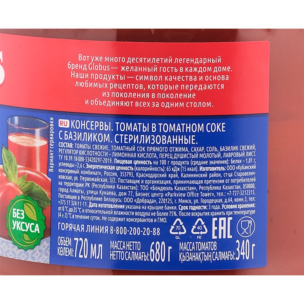 Состав | томаты свежие, томатный сок прямого отжима, сахар, соль, базилик свежий, регулятор кислотности - лимонная кислота, перец душистый молотый, лавровый лист. Не содержит консервантов и ГМО. |